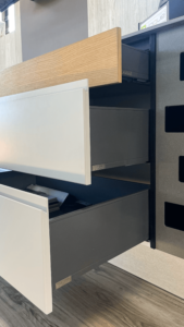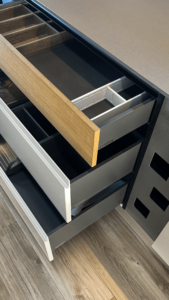 We ensure every detail meets the highest standards by using Blum hardware in our designs. Known for exceptional quality, Blum provides advanced soft-close systems, pull-outs for optimal storage space, and top-quality motion technology.
